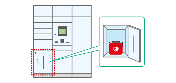 AED収納用の専用ボックスを設置。マンション居住者をはじめ、どなたでも使用でき、万一への備えてとして安心できる環境を整備できます。