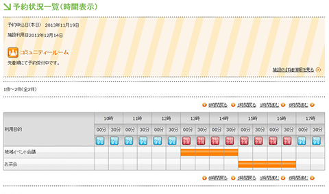ログイン後、一覧から施設を選択、利用日時を選ぶだけと簡単です。