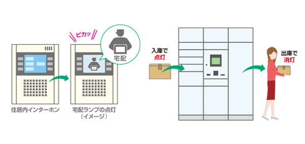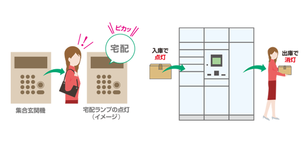 荷物の入庫を、集合玄関機に「宅配メッセージランプ」を点灯させてお知らせします。